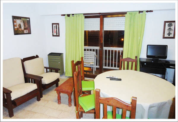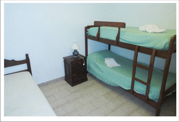el dormitorio principal con cama matrimonial con sommier y otro para 3 personas, Living-Comedor c/ sillones y mesa c/ 6 sillas,